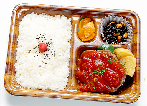 のり弁は昭和30年代当時、家庭に広まっていた「のりおかか弁当」がモデルです。白ごはんの上に、かつおとしょうゆでまぶした猫まんまをのせた弁当で、給食が無い時代はみんなが食べていました。1976年に○○亭第1号店を出す時にそれを「のり弁当」として発売したのが始まりです。その進化系のり弁はスポーツ大会・会議・ランチミーティング・女子会・子ども会・老人会などにおすすめです。