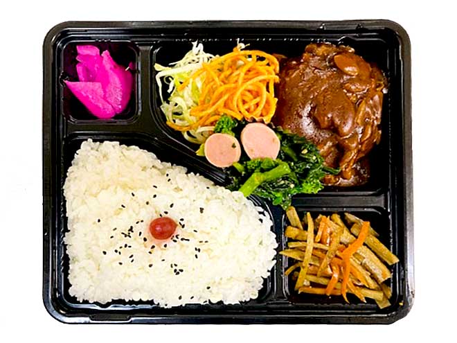 | おしながき | デミソースハンバーグ、チキン南蛮、スパゲッティ、カニクリームコロッケ、惣菜、漬物、ご飯 | |||